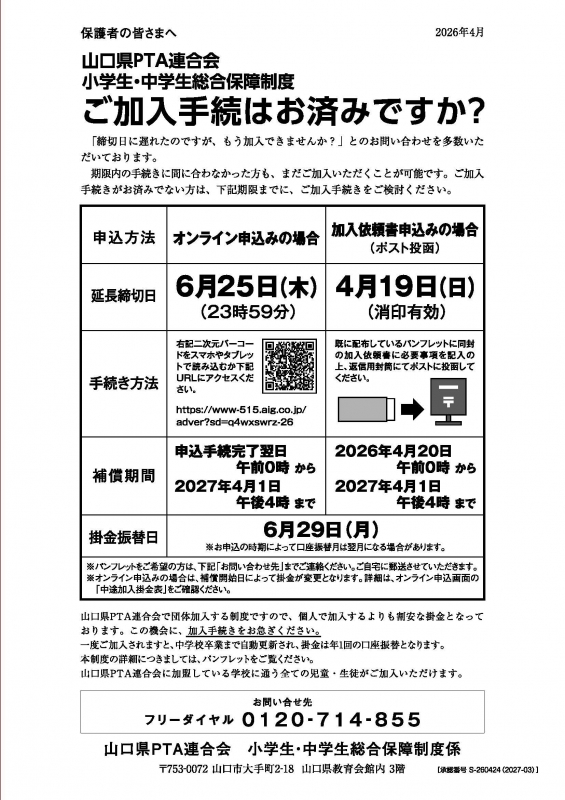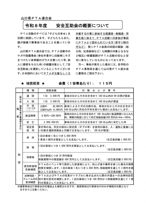 ※各学校のPTAでまとめて山口県PTA連合会にご提出ください。