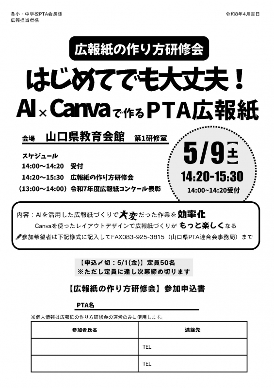◇ 応募締切日:6月12日(金) ※山口県PTA連合会必着